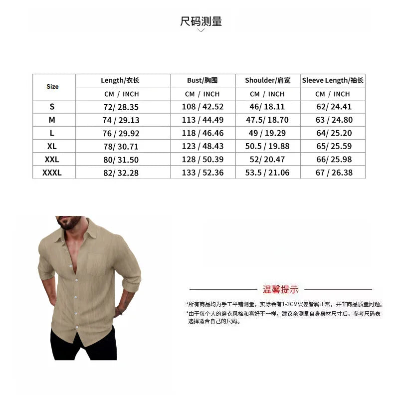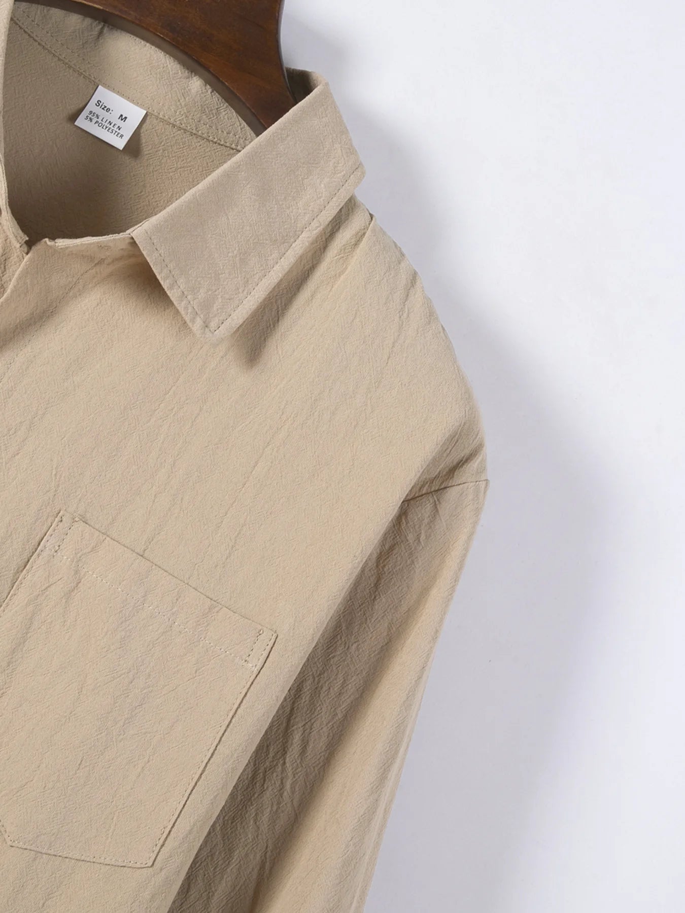 Elegant Design: Long sleeves with button cuffs and a single chest pocket for subtle refinement.